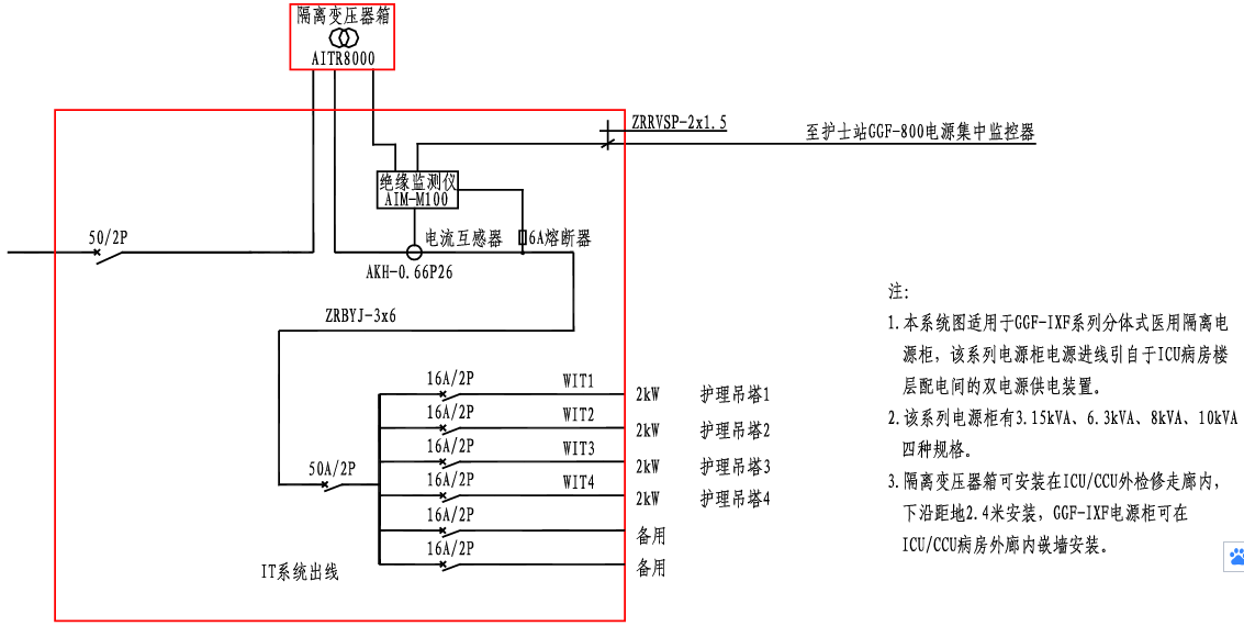 GGF-IXF醫(yī)用隔離電源柜系統(tǒng)接線圖