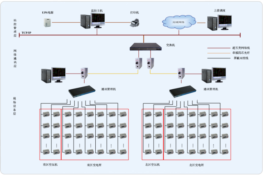 1. 顯示整個電力監控系統的網絡圖,動態刷新顯示各主接線圖上的實時運行參數;
