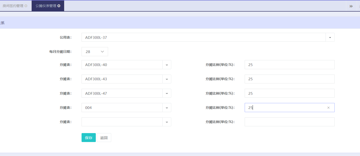 指定某塊表為主表,然后分配關(guān)聯(lián)子表,系統(tǒng)每個(gè)月自動(dòng)將主表的用電按比例換算成電費(fèi)從子表中扣除,這樣可以剩余人工統(tǒng)計(jì)的麻煩。